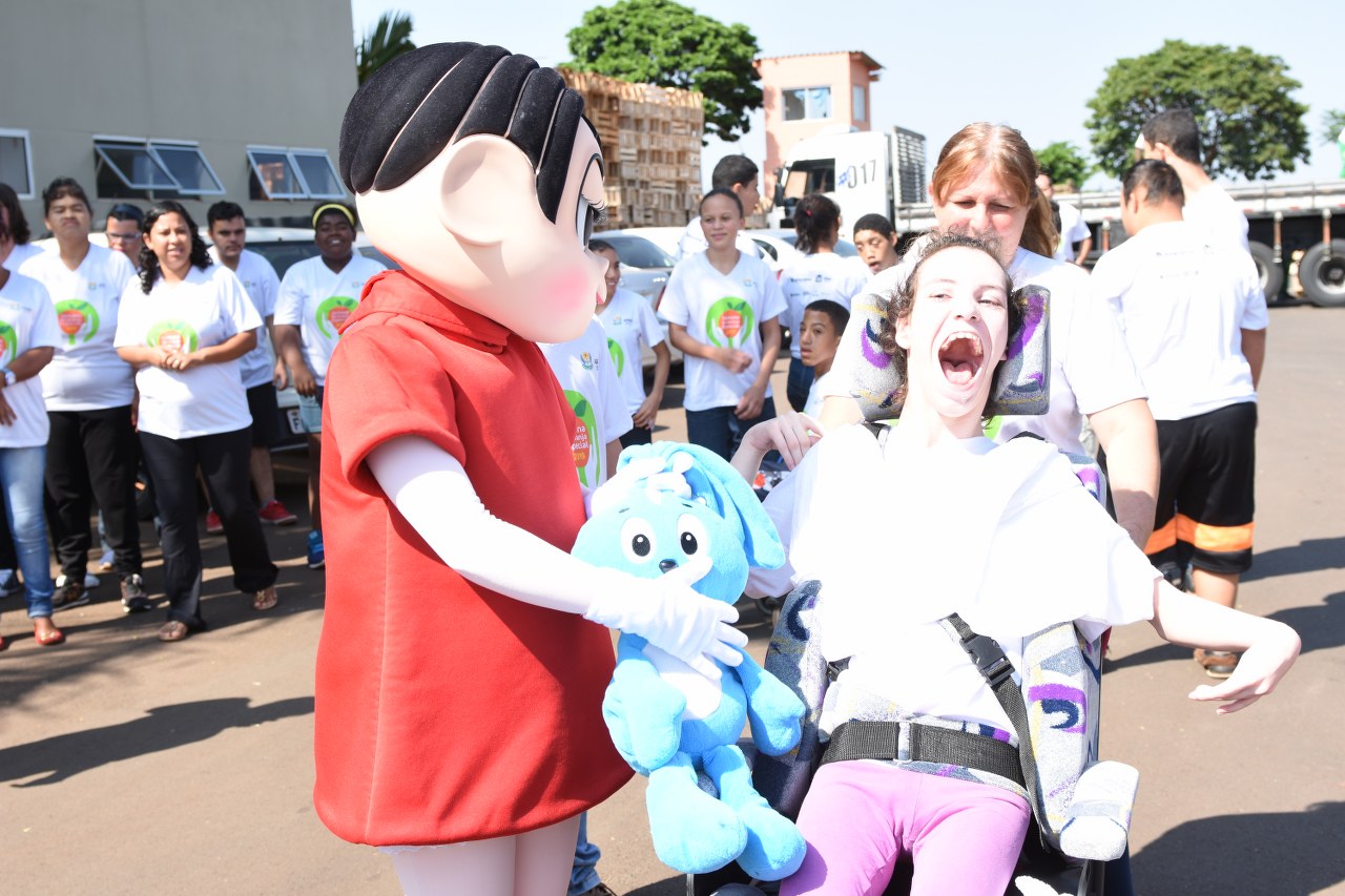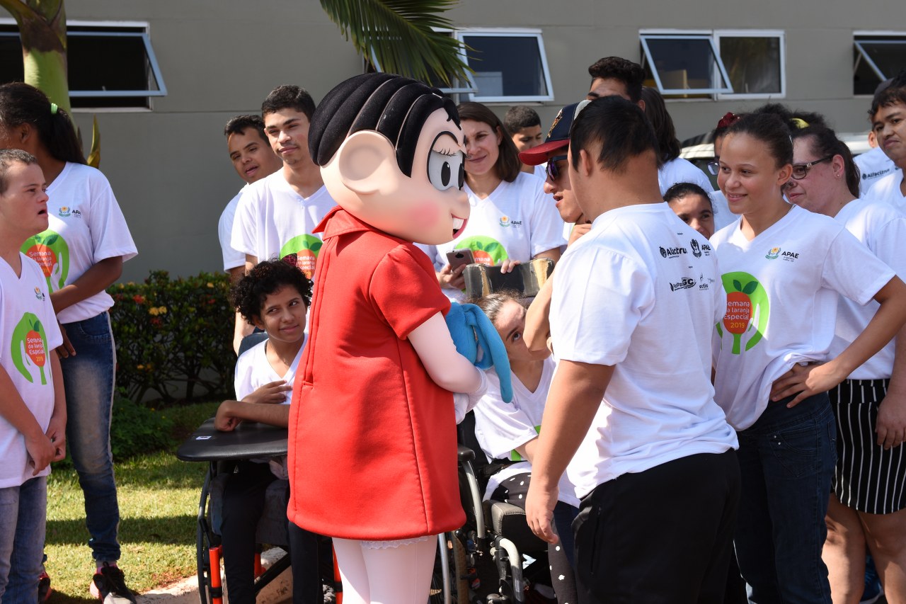 Com os olhos arregalados e muita alegria, alunos da Apae de Engenheiro Coelho foram recepcionados, no dia 23 de outubro, pela Mônica, da Turma da Mônica, em visita a AlfaCitrus. A personagem rapidamente conquistou a simpatia da garotada e parecia ter saído de uma história em quadrinhos para encantar e distribuir abraços carinhosos.